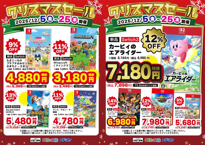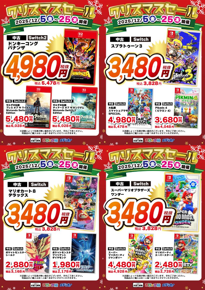 クリスマス🎄はサンタさんのお手伝いさせてください!🎅 おじゃま館 三宮店 2025年12月21日 11時37分 🎄クリスマスセール開催中🎄 12/5~12/25の期間中 子供から大人まで楽しめる 人気ソフトも大特価セール中🉐✨ ・プレゼント検討中の方🎅🎁 ・自分へのご褒美など 是非 #おじゃま館三宮店 へ‼️ おじゃま館三宮店 クリスマス セール