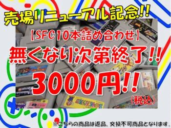 レトロソフトの福袋的なもの、あります。 おじゃま館 三宮店 2021年07月28日 17時03分 残りわずかです❣ レトロゲーム売場にて ☆裸FCソフト10本詰め合わせ ☆裸SFCソフト10本詰め合わせ 各種販売しております 色んなジャンルに挑戦したい方にも 運試しをしたい方にもオススメですよー FC RetroGaming SFC おじゃま館三宮店 ゲーム レトロゲーム 三宮